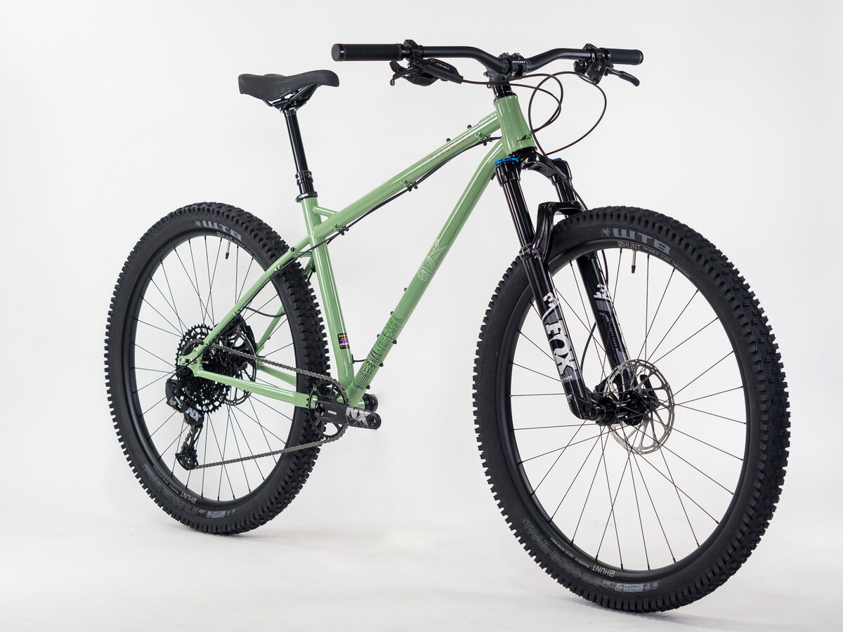 Hunt Trail Wide MTB wheels fitted with WTB Trail Boss 29 “x2.6” tires, SRAM NX drivetrain, and a FOX 34 Float fork complete the package.
